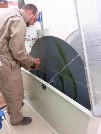 其實,還有一種固定化貼壁培養(yǎng)方式,藻細(xì)胞貼附于載體上進(jìn)行生長,該方法的好處在于方便藻細(xì)胞采收,基本上直接用刮刀等工具刮下來就可以,此外,還存在節(jié)約用水的優(yōu)勢。