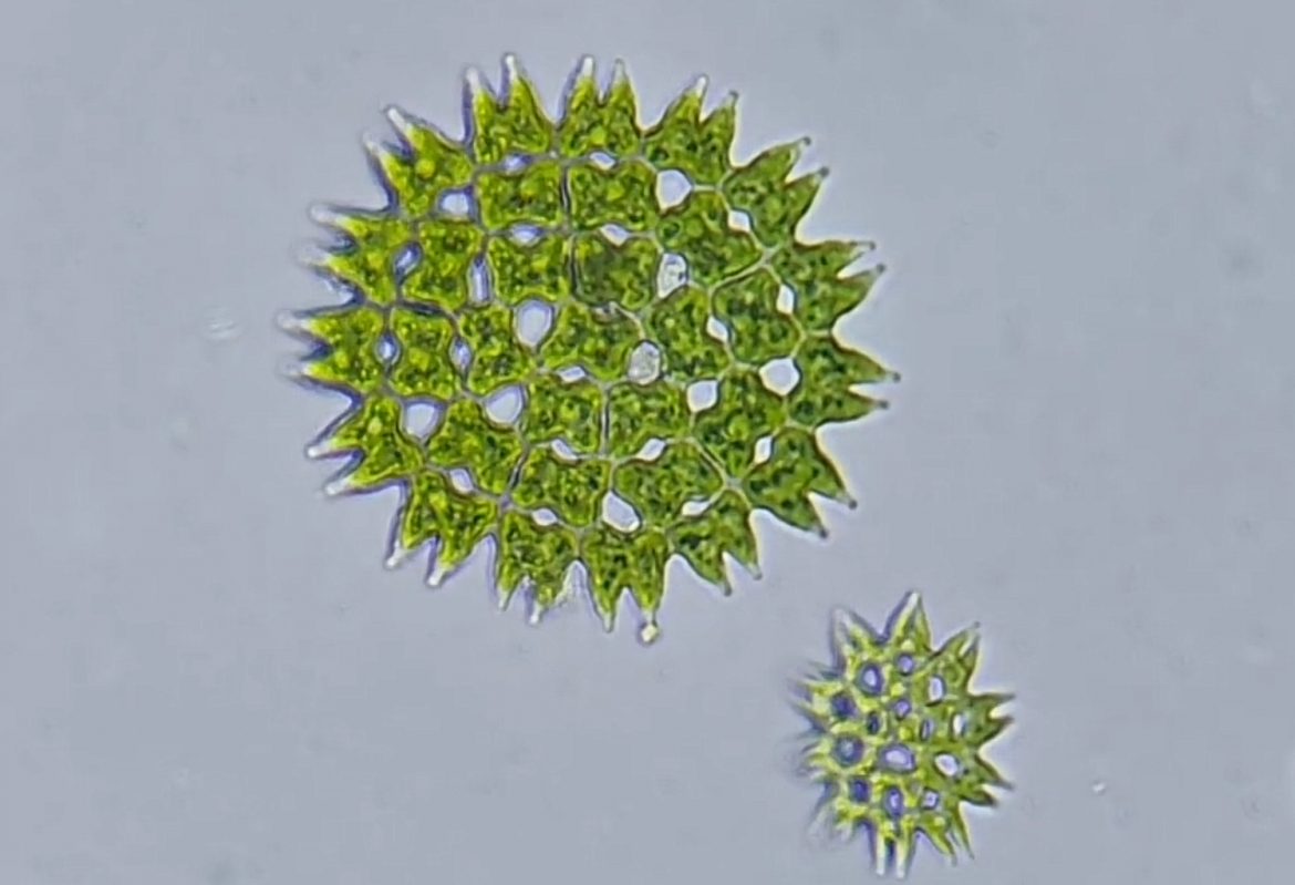 第一個盤星藻說:“看我,我像一顆綠色的星星,閃閃發(fā)光!”