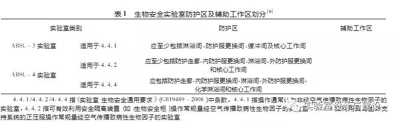????實(shí)驗(yàn)室氣密性要求是對(duì)實(shí)驗(yàn)室防護(hù)區(qū)的氣密性要求。實(shí)驗(yàn)室的防護(hù)區(qū)是實(shí)驗(yàn)室區(qū)域內(nèi),生物風(fēng)險(xiǎn)相對(duì)較大,需對(duì)實(shí)驗(yàn)室的平面設(shè)計(jì)、圍護(hù)結(jié)構(gòu)的密閉性、氣流以及人員進(jìn)入、個(gè)體防護(hù)等進(jìn)行控制的區(qū)域(表1)。不同級(jí)別實(shí)驗(yàn)室對(duì)防護(hù)區(qū)的劃分不同。