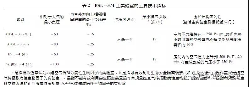 ????實(shí)驗(yàn)室在建設(shè)過程中應(yīng)將二級(jí)屏障做為實(shí)驗(yàn)室建設(shè)最重要的內(nèi)容。尤其是對(duì)于ABSL3(c)及以上級(jí)別實(shí)驗(yàn)室核心實(shí)驗(yàn)室具有氣密性打壓要求(表2),這就要求主實(shí)驗(yàn)室不僅在建造時(shí)選用可靠的裝修材料、遵循合理的施工方案、有效可行的實(shí)驗(yàn)室圍護(hù)結(jié)構(gòu)設(shè)備安裝方案,還要求在實(shí)驗(yàn)室竣工投入使用以后圍護(hù)結(jié)構(gòu)性能進(jìn)行定期維護(hù)和檢修。