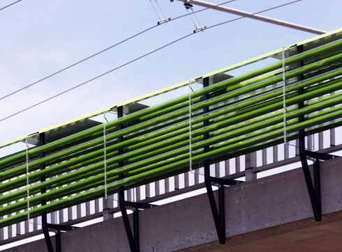 該生物反應(yīng)器包括含有藻類的管道、過濾器、水泵和太陽能電池板。太陽能電池板為水泵和過濾器提供動力,水泵讓混合大量藻類的水不停地流經(jīng)透明管道,藻類從下方通過高速公路的汽車排出的尾氣中吸收二氧化碳,并通過光合作用將它們轉(zhuǎn)化為能量從而生長。而藻類的生長速度是非常快的,其中一部分會被過濾出來,用來制造生物柴油、發(fā)電、制藥、化妝品甚至是食物。這種設(shè)計很可能成為城市環(huán)保、綠化的新見解。