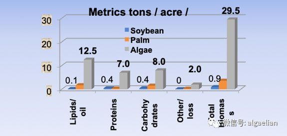 與棕櫚、大豆相比,藻類生物飼料的生產效率明顯提高