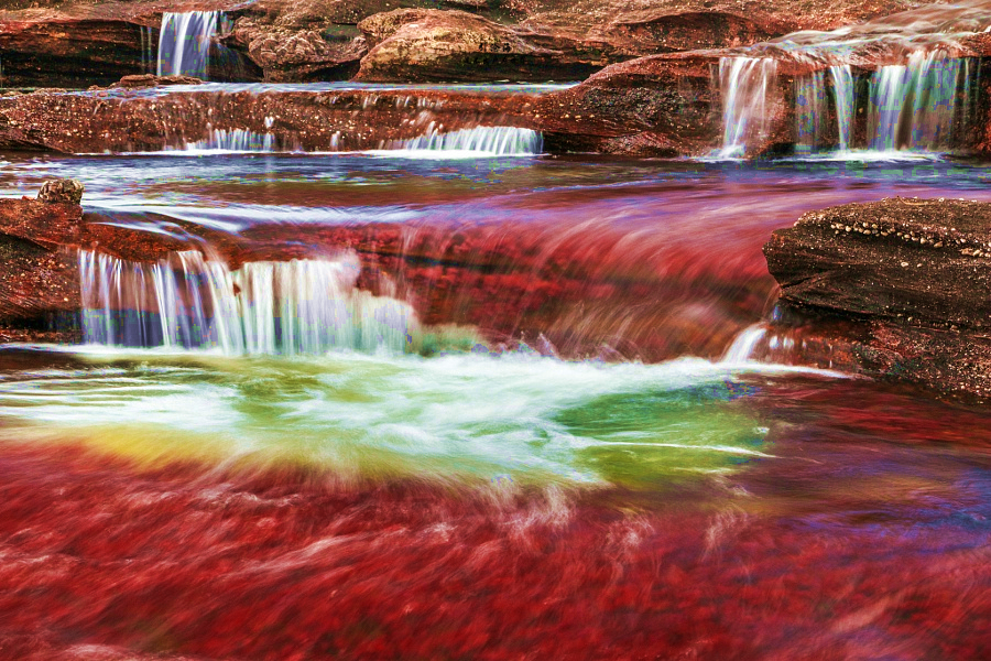 如果說,巴哈馬的海水藍到清澈見底,希勒湖中粉色的湖水溫柔到流進人心,那么哥倫比亞如同彩虹一般復(fù)雜到絢麗的河水可能會讓人如夢似幻了。