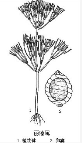 麗藻屬是輪藻門輪藻科種類最多、分布較廣的一屬。植物體柔軟、纖細(xì),小枝多等勢(shì)分叉,少單軸分叉;每個(gè)莖節(jié)上多為單輪,藏精器多頂生,藏卵器多側(cè)生于小枝的分叉上,有的也生于小枝的基部。