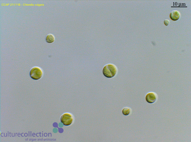 圖4.保藏于CCAP的小球藻(編號(hào)211/11B),為Beijerinck所分離的普通小球藻典型株(另見同源株UMACC 248; SAG 211-11b; UTEX 259; IAM C-207; UTCC 111)