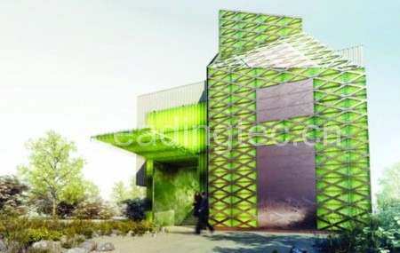 記得我們之前分享過德國的藻類綠建筑BIQ利用平板式藻類培養(yǎng)反應(yīng)器作為百葉窗,用來遮蔽陽光以降低室內(nèi)溫度與隔絕噪音并且培養(yǎng)藻類生物質(zhì)作為沼氣的原料可提供部分家用電能。最近在法國巴黎也有一家Ennesys能源系統(tǒng)公司打算將微藻應(yīng)用于都市建筑上。他們的概念與BIQ非常類似,也是設(shè)置平板式藻類培養(yǎng)反應(yīng)器于建筑外。然而Ennesys的系統(tǒng)還打算結(jié)合建筑廢水處理,將建筑內(nèi)部產(chǎn)生的廢水作為微藻的營養(yǎng)源,一方面節(jié)省了培養(yǎng)微藻的成本,另一方面也提供了循環(huán)用水的機(jī)會。Ennesys對于微藻生物質(zhì)的利用方式也與BIQ略為不同。Ennesys與美國的微藻能源公司OriginOil簽約,使用OriginOil所開發(fā)的電萃取技術(shù)將油脂從微藻中分離,將高價值成分分離之后再將剩余生物質(zhì)發(fā)酵產(chǎn)生沼氣使用。