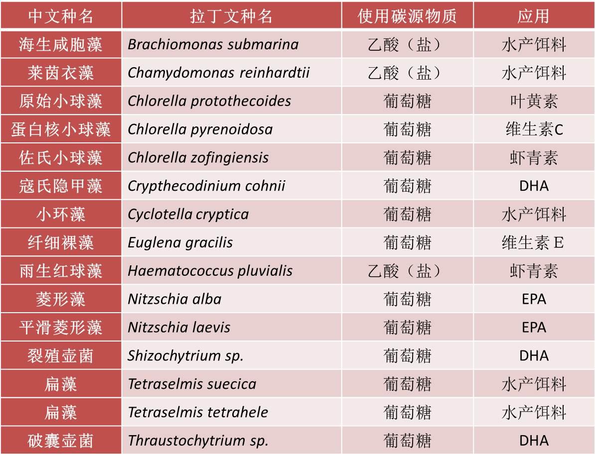 表2. 可異養(yǎng)微藻種類及應(yīng)用
