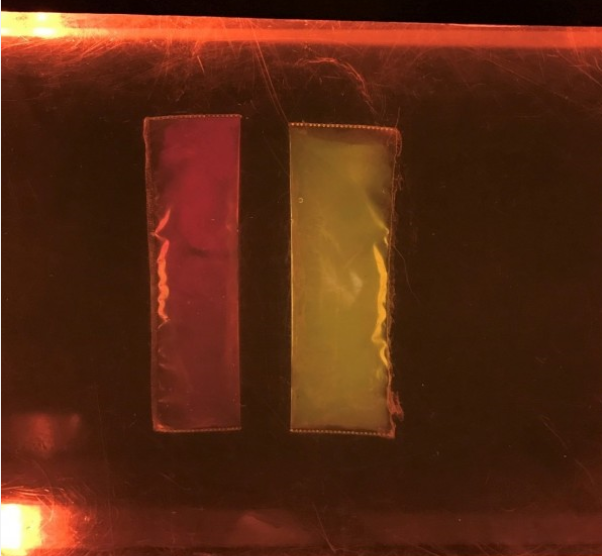 海大博士生林宏運(yùn)找到硅藻基因密碼,讓硅藻從原本的發(fā)紅光(左)變成發(fā)綠光(右)。