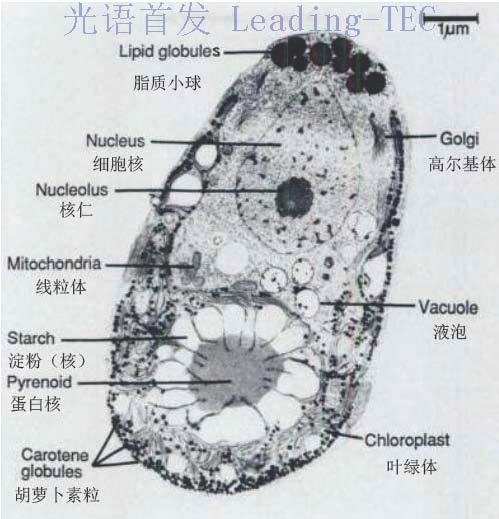 圖3.電鏡拍攝的鹽藻細胞及亞細胞結構