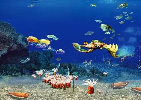 科學家發(fā)現(xiàn),那時大氣氧含量達到了足以使生物機能很好發(fā)育的水平。因此,生物進化出了骨骼,眼睛、脊索、口器和觸手等,而且以身體兩側(cè)對稱為主。它們開始向海洋不同的水層擴散,建立起了現(xiàn)代海洋生態(tài)系統(tǒng)的雛形。由于大型捕食動物奇蝦的出現(xiàn),復雜的食物鏈也開始建立了起來,從而引發(fā)了之后五億年來高潮迭起的生命演化。