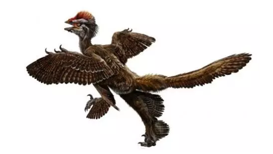 科學家們在熱河生物群中,發(fā)現(xiàn)了大量帶羽毛的恐龍,這表明,小型獸腳類恐龍中有一支身披多彩羽毛的恐龍,經(jīng)過四翼恐龍的演化階段,逐漸演化成了兩個翅膀的鳥類。這一發(fā)現(xiàn),揭開了恐龍演化成鳥類的奧秘。