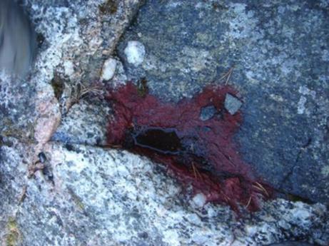 圖1. 自然環(huán)境中石頭坑里的雨生紅球藻,水洼干涸后形成紅色藻痂(By K. Chekanov et al., 2006)