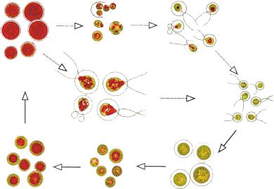 圖3. 雨生紅球藻繁殖的示意圖(by Dirk Fiedler)