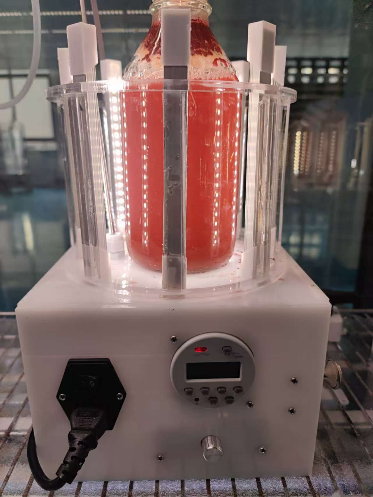 第二階段:調(diào)強光源(>10,000 Lux)和高溫環(huán)境,促進蝦青素合成。