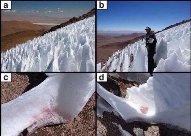 在安第斯山脈高處,匕首形的冰錐里孕育著繁衍生息的微生物群落,為地球上最惡劣環(huán)境之一的生命提供了一片綠洲,同時也為揭示其他星球上的生命提供了可能類似物。這種獨(dú)特的冰刃結(jié)構(gòu)被稱為“涅維斯悔罪者”,得名于它們類似于穿著白袍的僧侶,在寒冷干燥的海拔13000英尺以上條件下祈禱,這些penitentes的高度從幾英寸到15英尺不等。