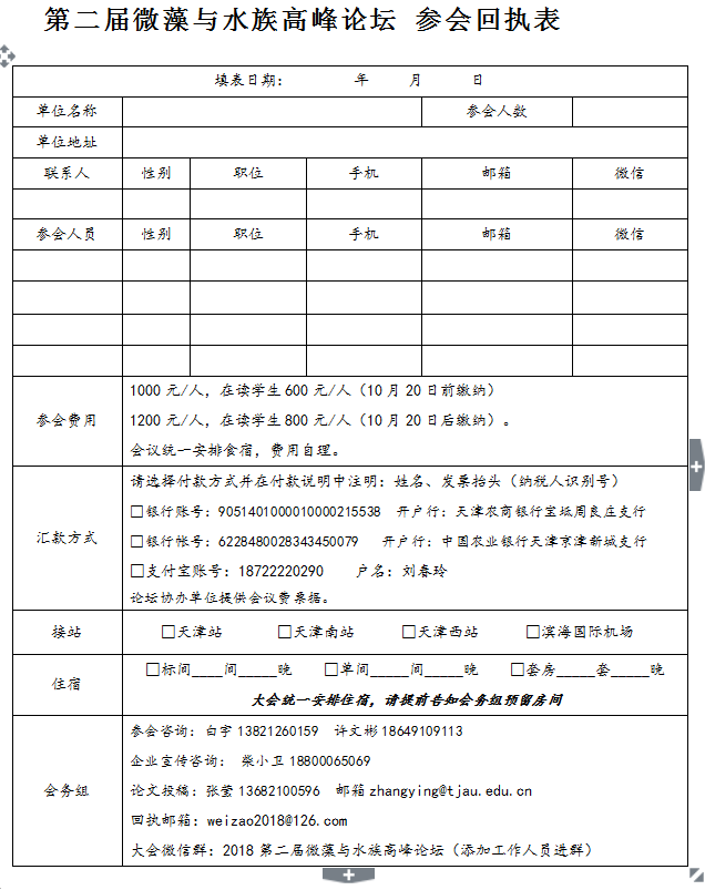 第二屆微藻與水族高峰論壇?參會回執(zhí)表