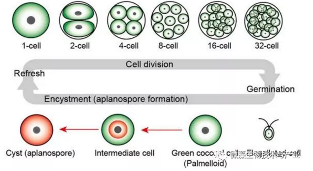 小球藻分裂的詳細(xì)過程示意(Source:Morphology, composition, production, processing and applications of Chlorellavulgaris: A review)