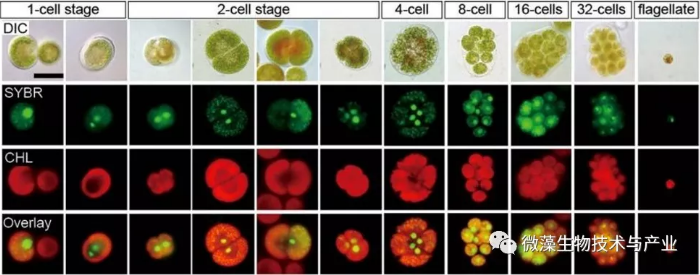 雨生紅球藻綠色細(xì)胞分裂時(shí)產(chǎn)生不同數(shù)量的子細(xì)胞(Source: Md. Mahfuzur R. Shah,F(xiàn)rontiers in Plant Science,2016)