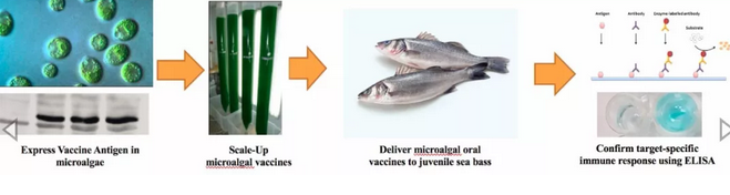 微藻疫苗不需要像其他疫苗需要冷藏,同時(shí)可將含有疫苗的微藻加入到飼料或直接飼喂給魚苗,因此可實(shí)現(xiàn)對(duì)大量的水產(chǎn)魚類接種疫苗。?