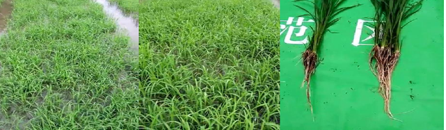 在湖南省婁底市紫鵲界中兩組試驗中發(fā)現(xiàn),施用微藻可使水稻提前抽穗2-3天,提前成熟5-7天;增加產(chǎn)量10%-25%,整個生育期根系生長明顯好于對照組;