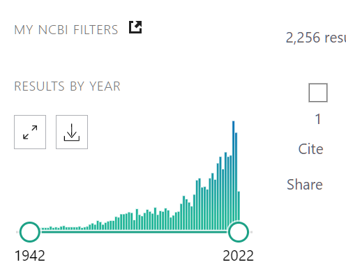 說產(chǎn)業(yè)之前先說科研,產(chǎn)業(yè)不好評估,科研倒是可以看出明顯的趨勢,下圖是在NCBI的PubMed中輸入關(guān)鍵詞“phycocyanin”,自1942年以來,關(guān)于藻藍(lán)蛋白的科學(xué)研究論文數(shù)量,共計2200多篇,在近些年呈現(xiàn)快速上升的趨勢,可見這個研究領(lǐng)域的熱門程度。