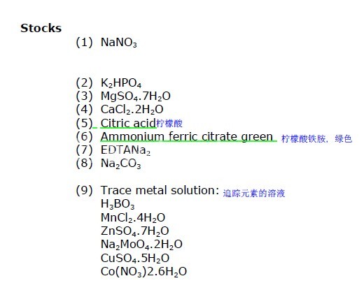 本品濃縮液采用進(jìn)口的SIGMA試劑和MILLIQ水配置,經(jīng)過高壓滅菌,0.22μm濾膜抽濾,可以稀釋500-1000倍培養(yǎng)藻液。