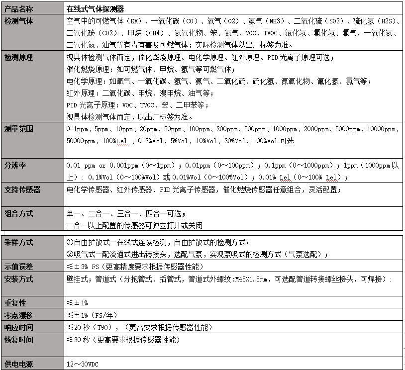 CO2氣體監(jiān)測裝置技術參數(shù)