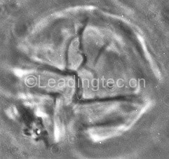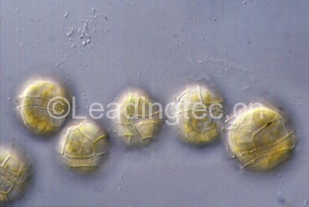 細(xì)胞球形,尺寸較小,直徑15-29微米,細(xì)胞棕綠色,具鞘,包囊從球形到稍扁形,上面看為圓形(直徑25-35),側(cè)面觀察為卵形(長28-35微米,寬20-30微米)。大多數(shù)細(xì)胞含有粒狀物質(zhì)和少量橘黃色物質(zhì)。有腹孔,窄。