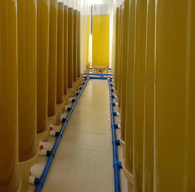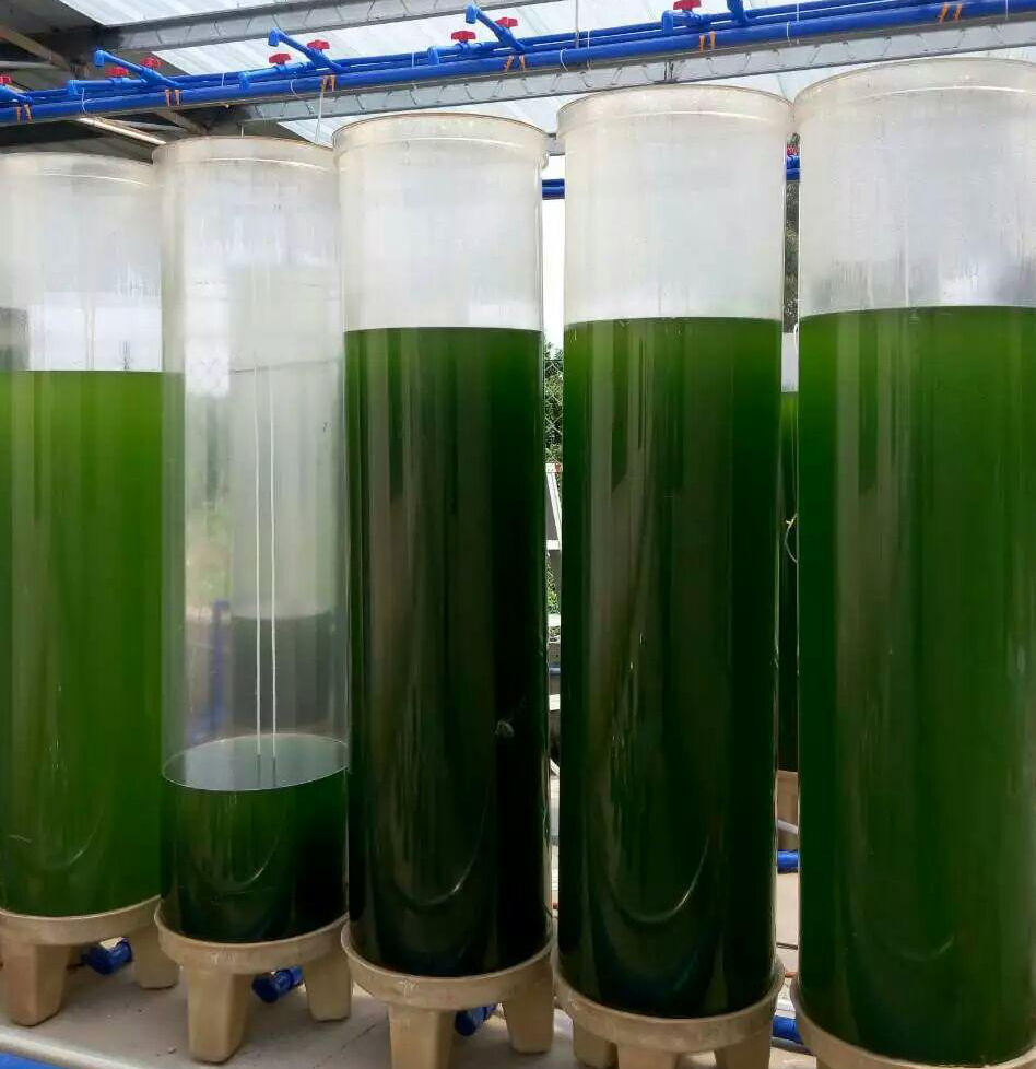 光語生物為大規(guī)模藻類培養(yǎng)的育苗場和生產(chǎn)者提供柱狀光生物反應(yīng)器,采用500mm直徑的有機玻璃筒體,底座采用玻璃鋼材質(zhì),配套dn40的PVC出水口。廣泛用于藻類二級培養(yǎng),筒體高度2米容量在380L,一般培養(yǎng)運行在350L藻液,筒體高度1米,容量在190升。