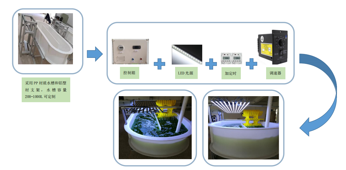 - 外置LED光源可控光照時間光照強度,更換光色;