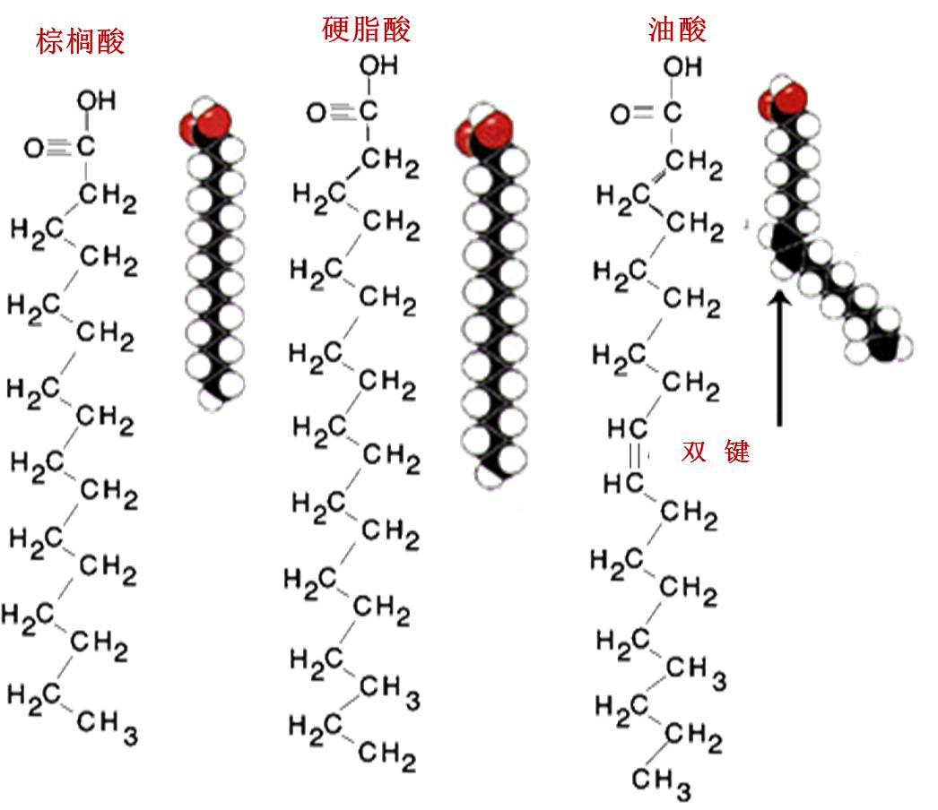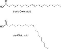 圖4.反式油酸(上)和順式油酸(下)結(jié)構(gòu)示意圖