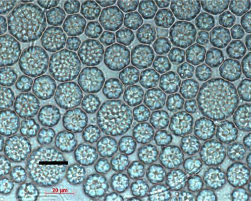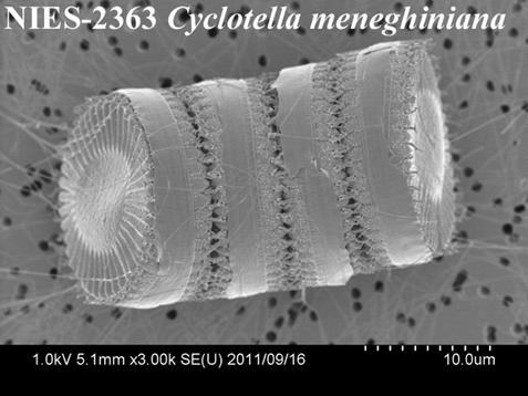 圖16.梅尼小環(huán)藻的電鏡照片,就像一個個圓餅干一樣,本照片為日本藻庫NIES-2363株。