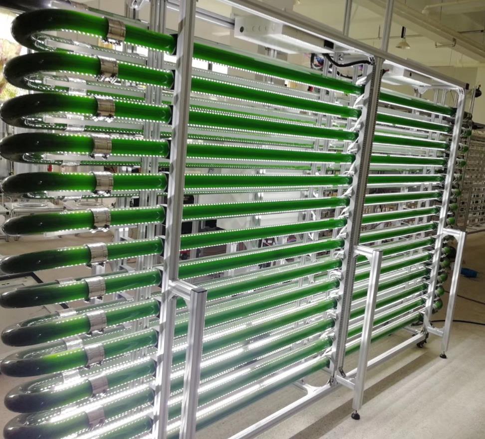 Trent博士的研究得到了NASA的背書,在某種程度上推動了微藻污水處理的研發(fā)力度。但最終,NASA并沒有給OMEGA項目續(xù)約,Trent博士描繪的那幅整合了污水處理、可再生太陽能、風能、潮汐能、水產(chǎn)養(yǎng)殖和生物質能的恢弘畫面至今也還無法實現(xiàn)。除了開放池藻塘,下面這種光生物反應器算是目前微藻污水處理的高級模樣了。