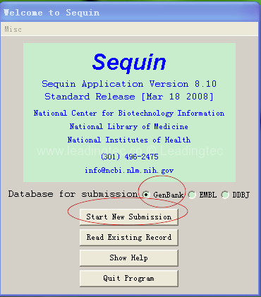 開始一個(gè)新的提交或是選擇編輯已有保存的文件(Read Existing Record),用Sequin的好處就是你可以保存下來,可以隨時(shí)修改。直到滿意后再向NCBI提交。