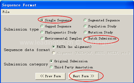 準(zhǔn)備一個(gè)Fasta格式的序列。保存在一個(gè)文件??梢赃x擇單個(gè)序列或是批量序列。其它的Type都是比較特殊,不常見。
