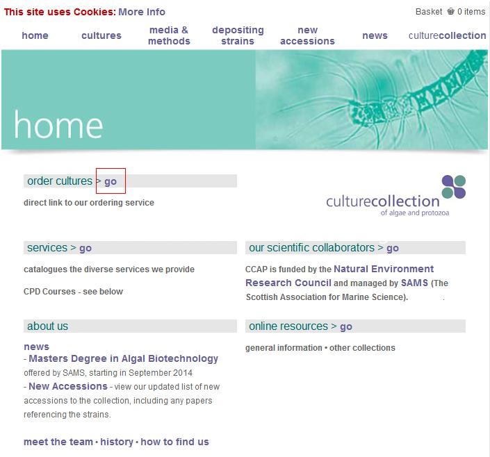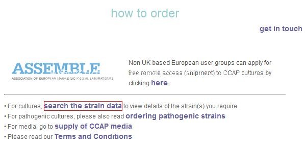CCAP官方網(wǎng)址:http://www.ccap.ac.uk/,下面同樣以卵囊藻(Oocystis)為例,簡單介紹一下購買流程: