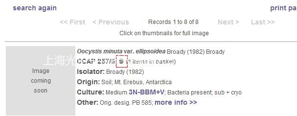 輸入藻種名稱,并點(diǎn)擊Search,彈出結(jié)果,如圖:
