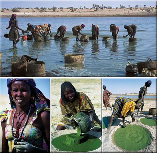 人類利用微藻的歷史可追溯到千年以前,我國漢朝的“蘇武牧羊”里便有記載蘇武“渴飲雪,饑吞氈”,此中的“氈”便指的是一種藍(lán)藻——發(fā)狀念珠藻(Nostoc flagelliforme),俗名發(fā)菜,在我國宋朝時(shí)期甚至是一種出口產(chǎn)品;我國湖北省鶴峰縣走馬坪鎮(zhèn)的特產(chǎn)——葛仙米,亦是一種藍(lán)藻,稱為擬球狀念珠藻(Nostoc sphaeroids),因東晉時(shí)期的道教名家葛洪而得名;西班牙殖民者十五世紀(jì)末到達(dá)美洲時(shí),便發(fā)現(xiàn)阿茲特克人(Aztec)在食用一種從湖里打撈的鏈狀藍(lán)藻,即螺旋藻(Spirulina);而法國殖民者在上世紀(jì)40年代到達(dá)非洲乍得湖時(shí),也發(fā)現(xiàn)當(dāng)?shù)赝林谑秤寐菪濉?/span>